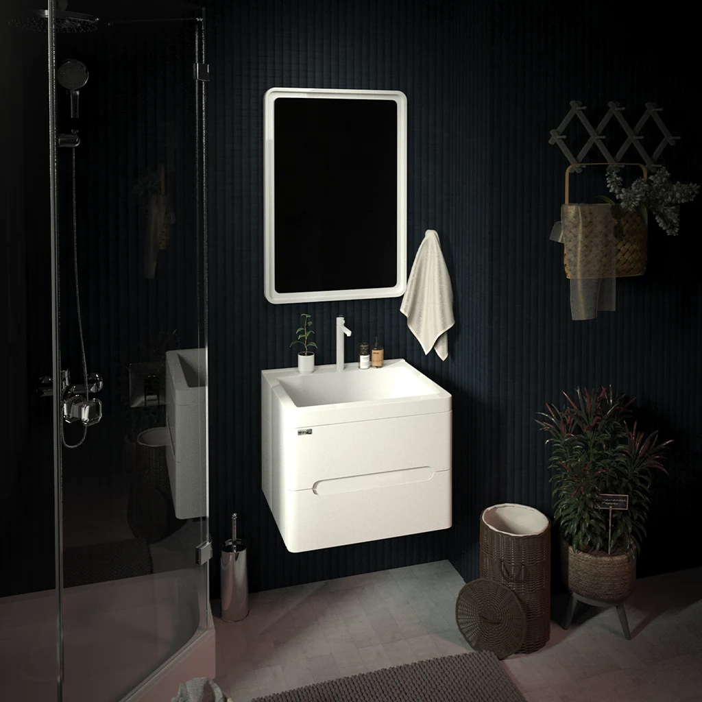 • آینه دارای قاب برجسته و جنس PVC و لایه مقاوم در برابر رطوبت