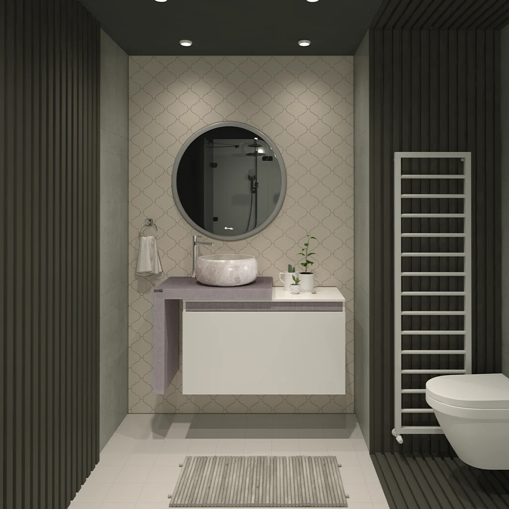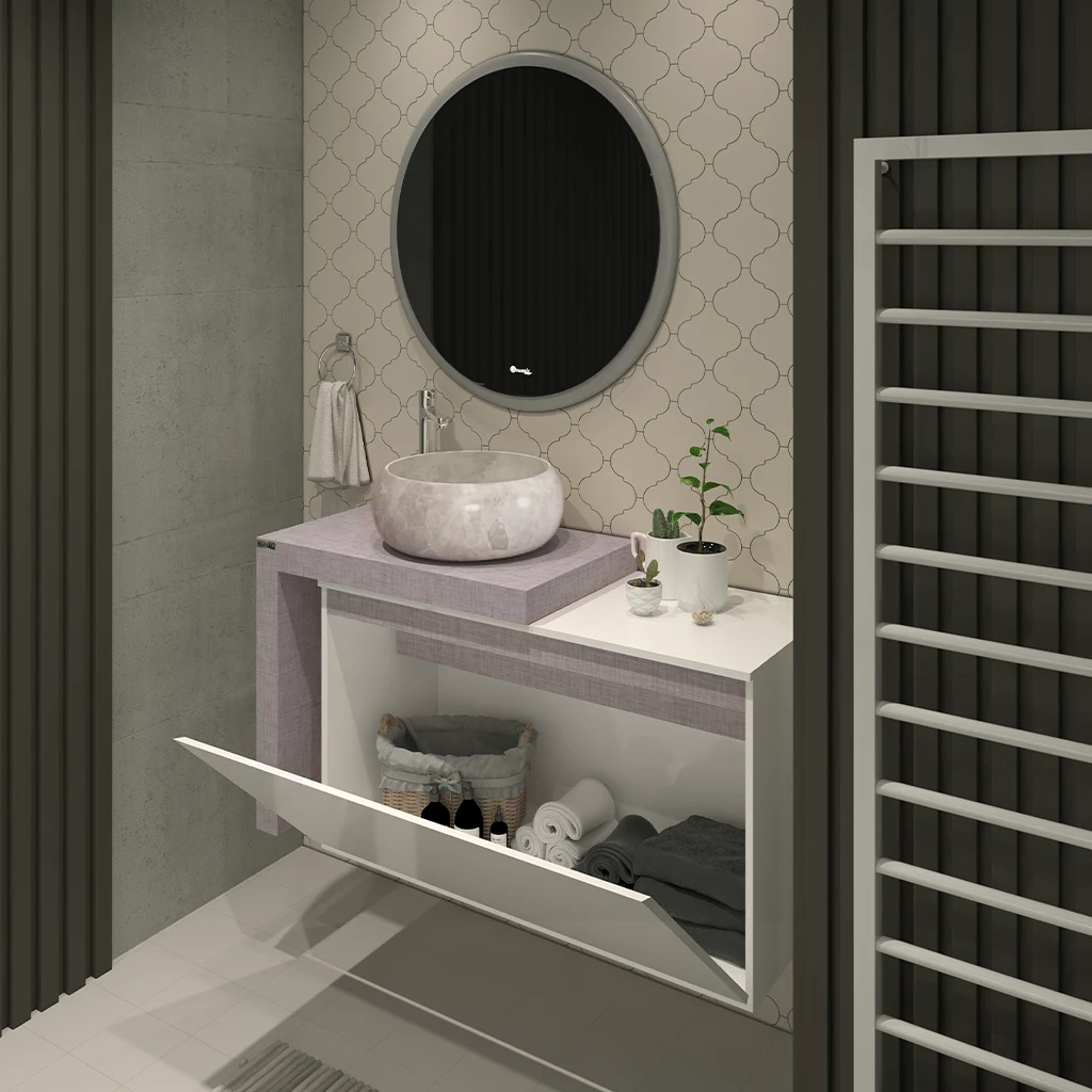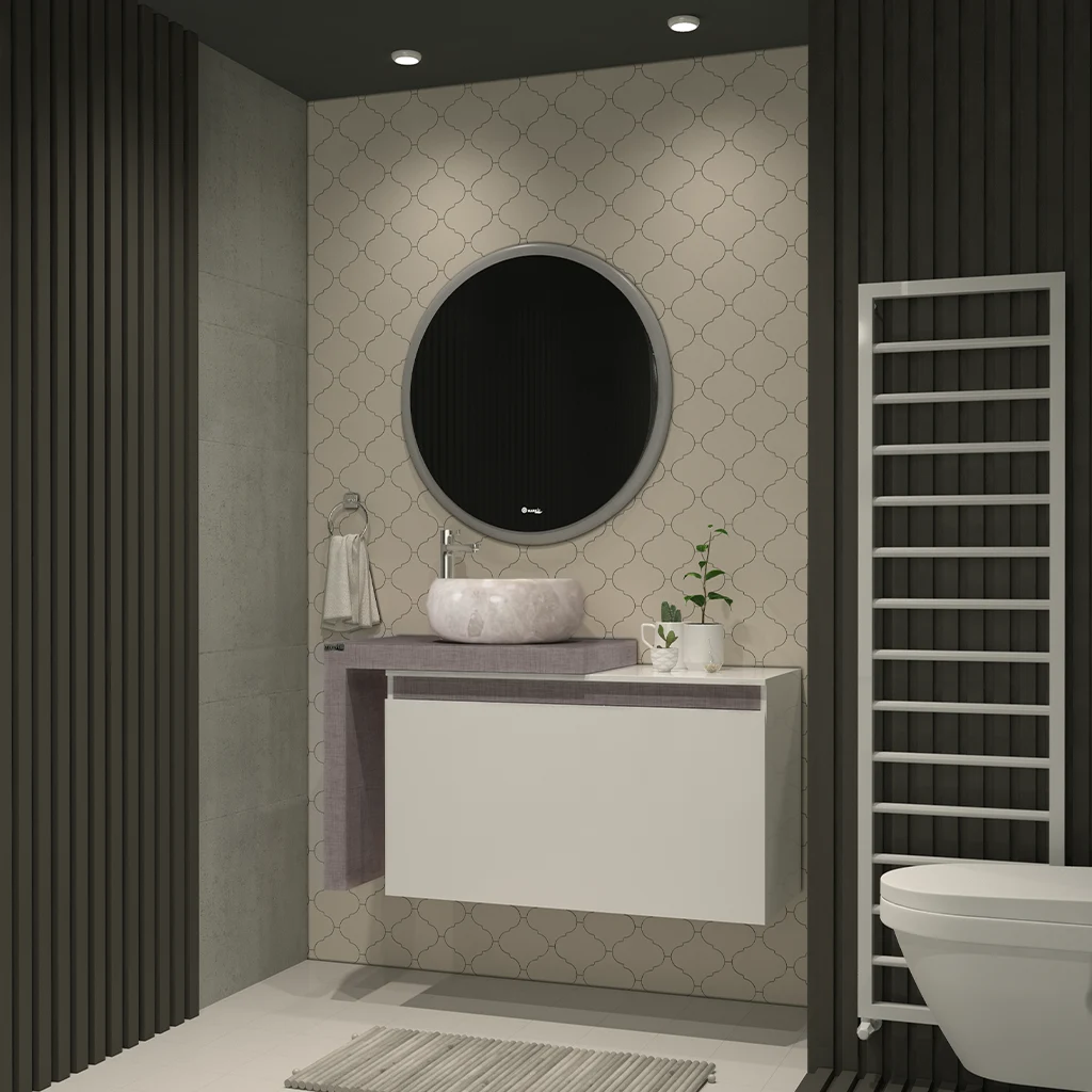 - آینه گرد دارای نور پس زمینه و قاب با لایه محافظ در برابر رطوبت